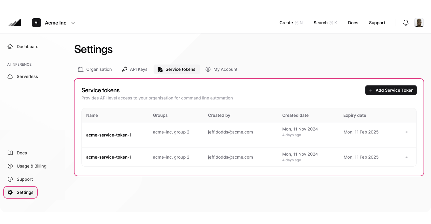 The creation flow looks like this:- Navigate to Settings → Service Tokens.